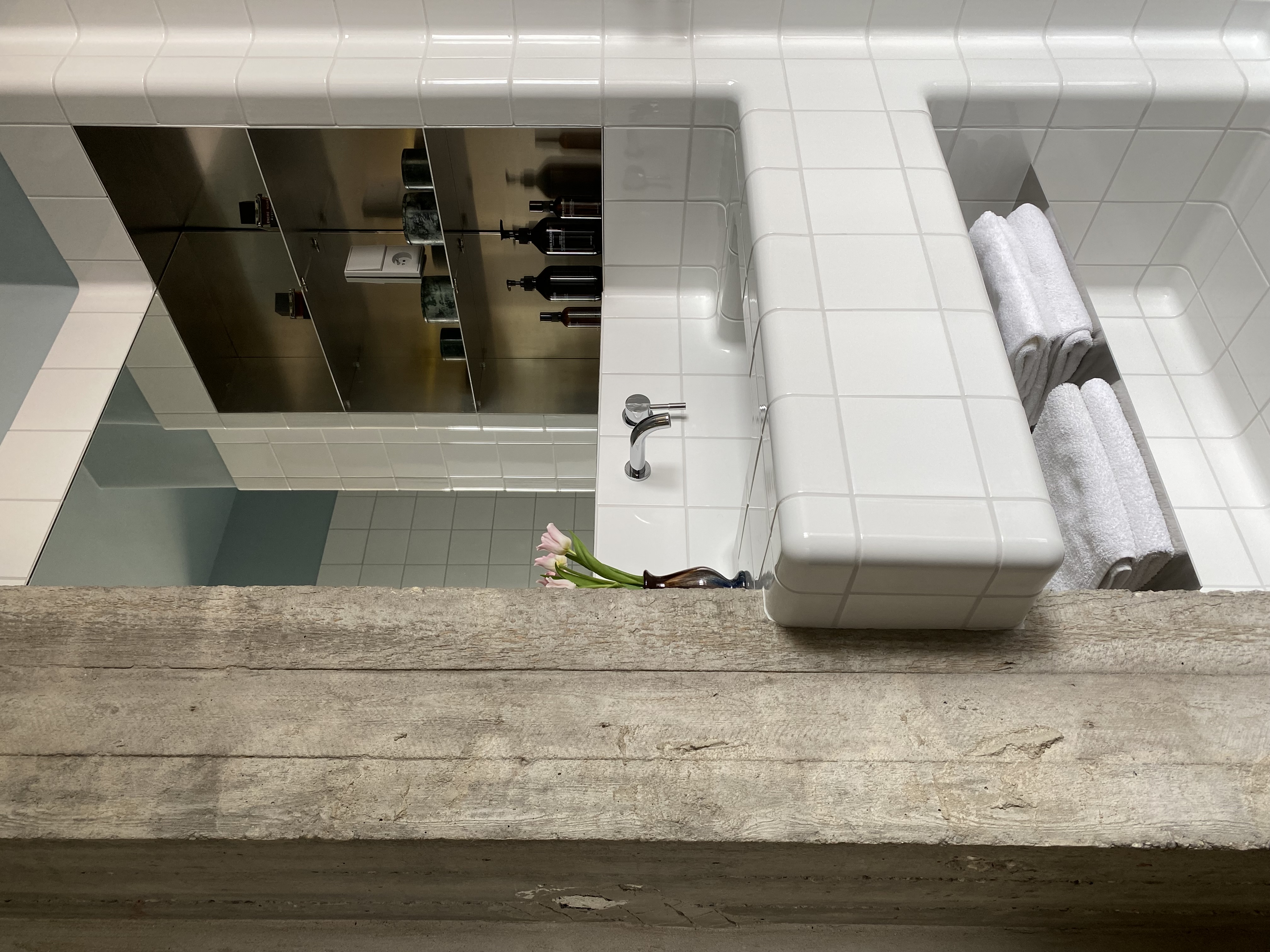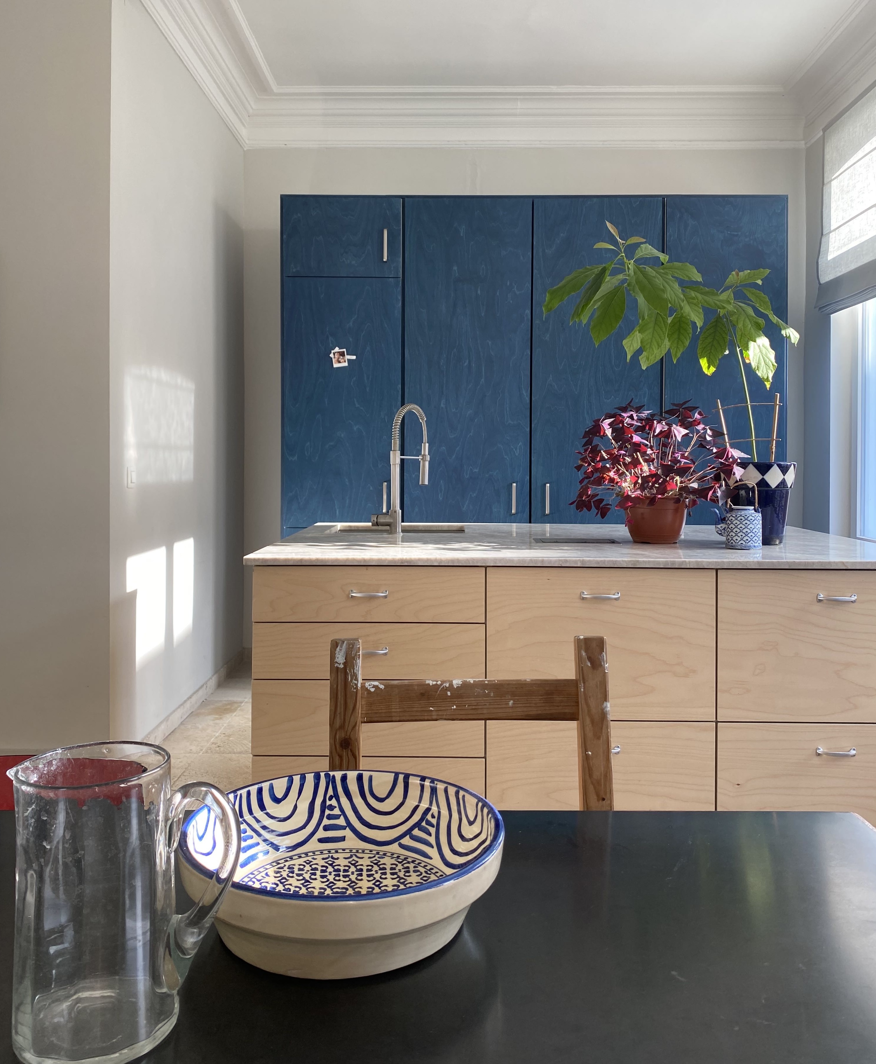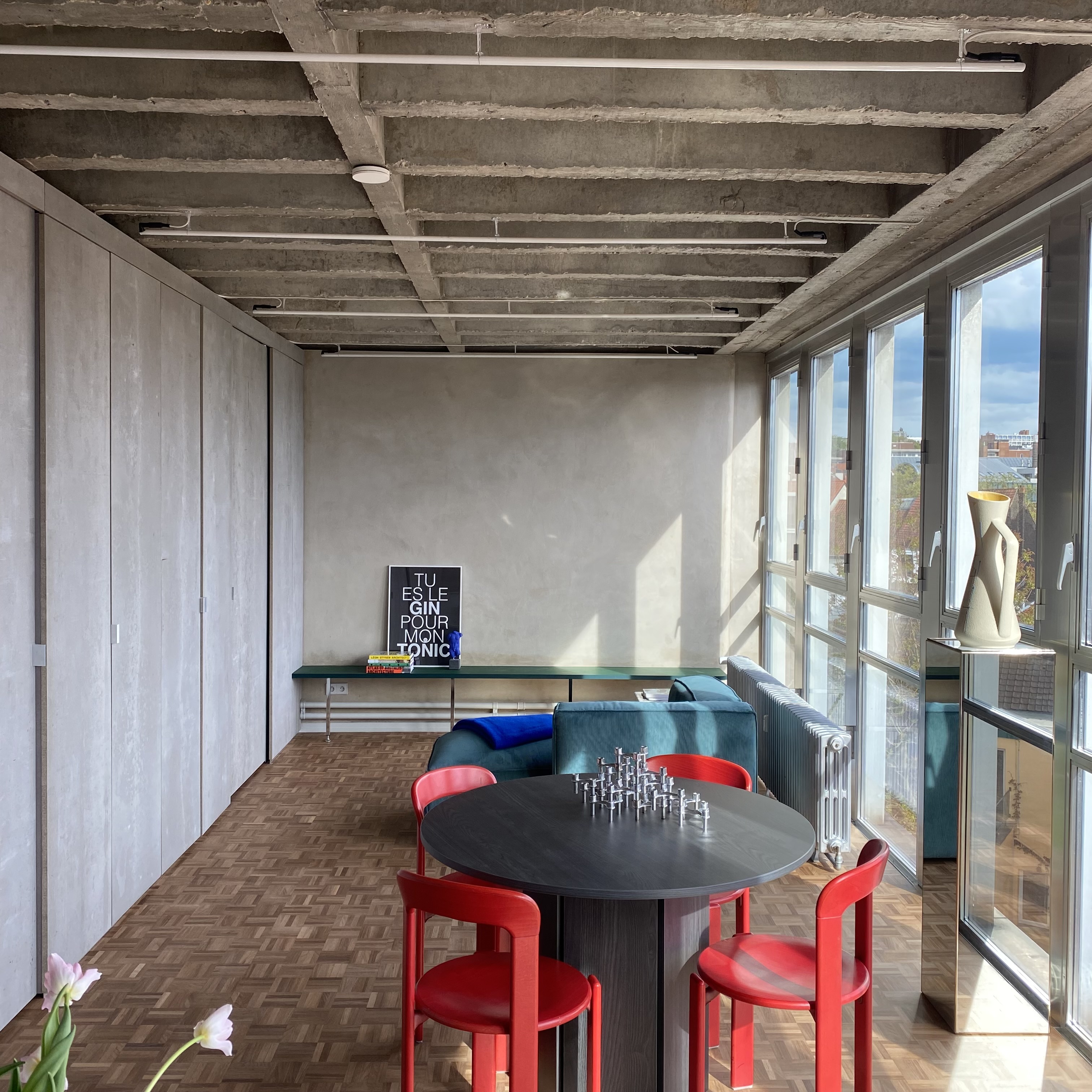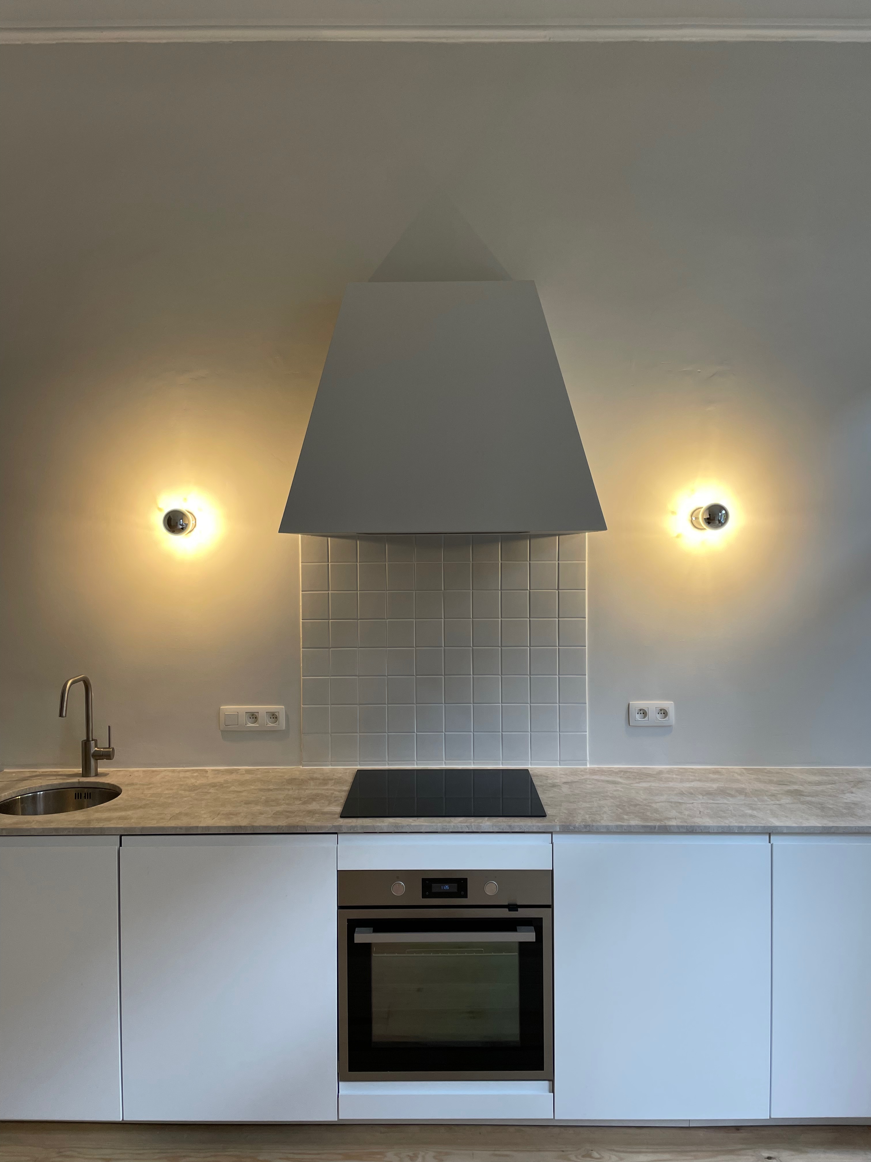 Our clients fell in love with the many original sixties features that are well preserved in this flat in Paris. We proposed to modernise but with respect of its soul. Walls were stripped of its wallpaper, carpets removed to reveal beautiful parquet floors and a new opening was created between the living room and guest room to be able to enjoy the view and abundance of daylight. A highlight is the original boat kitchen where we subtly integrated new kitchen appliances.